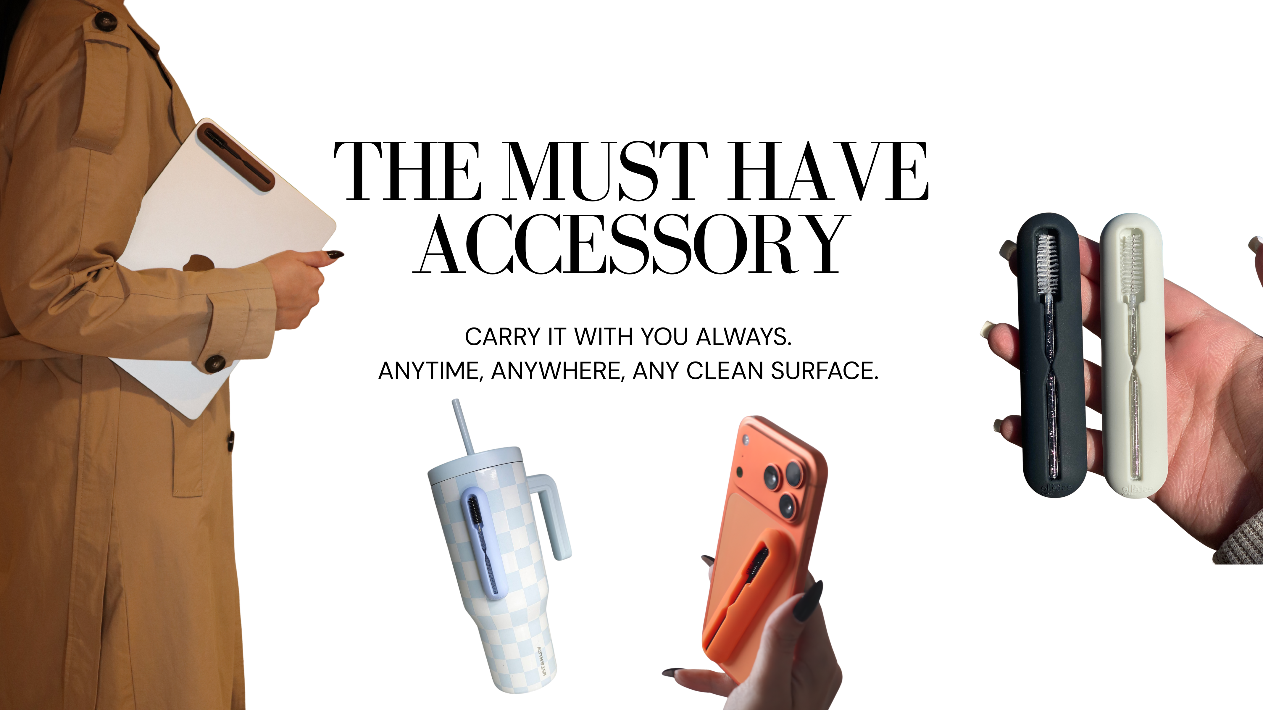Our innovative, patented design ensures your spoolie stays clean, protected, and always within reach. No more digging through your bag or tossing out dirty brushes.